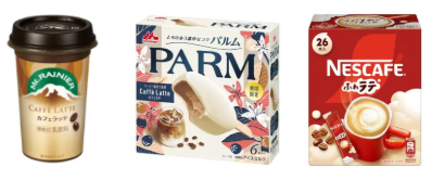 飲料に限らず、アイスや菓子、パンなどでも「ラテ」「ミルク」を思わせる商品が目につく点も、ひとつの特徴です。