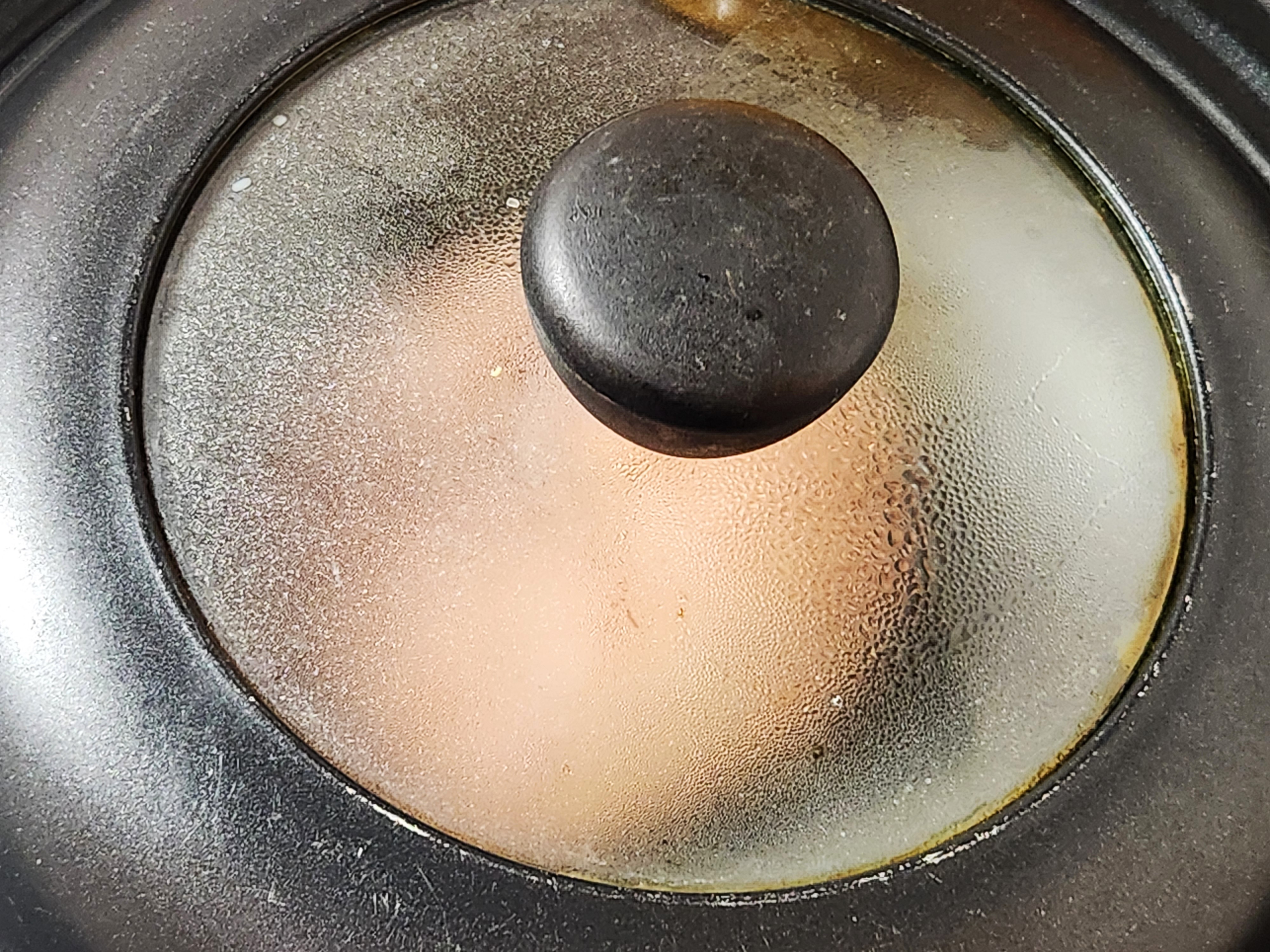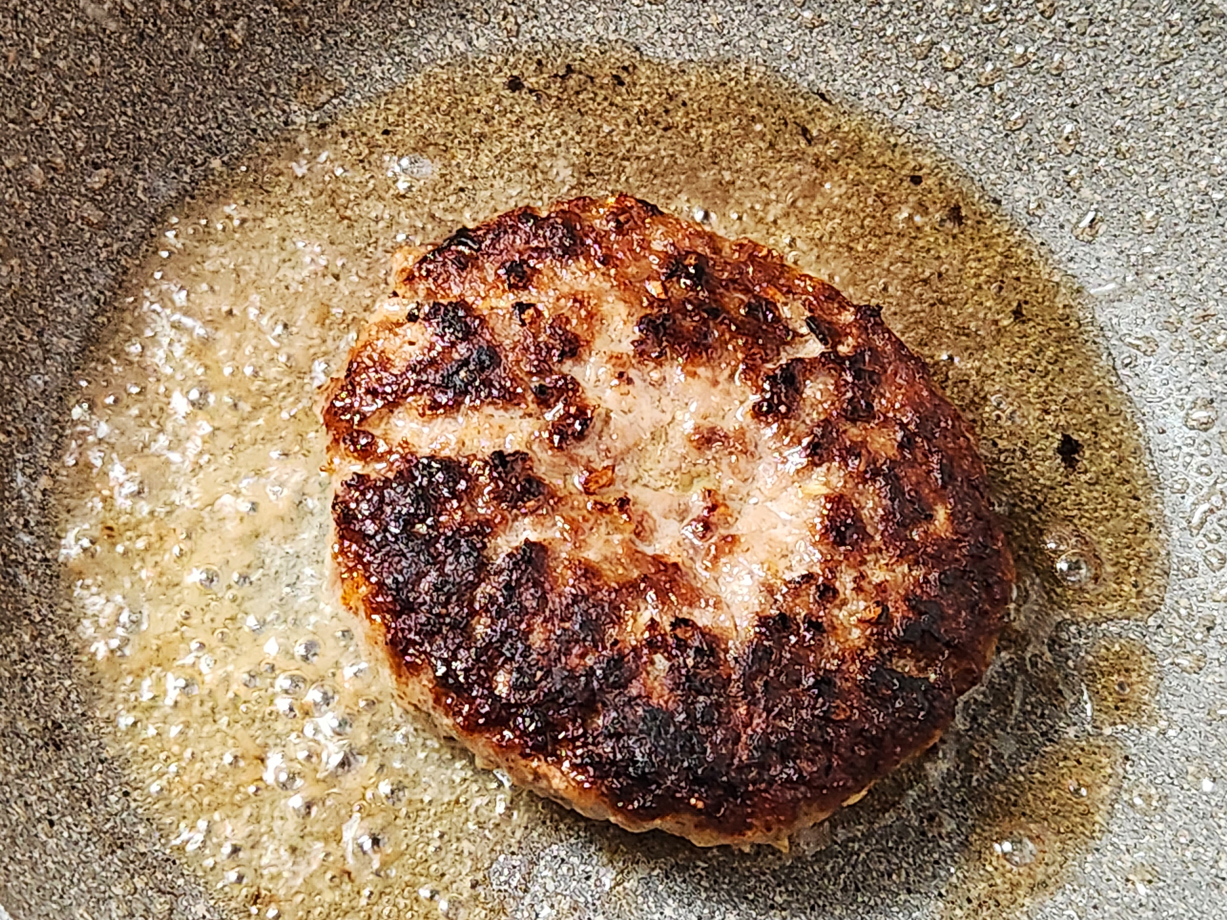 焼く前に電子レンジで解凍。片面の中央をつぶし、蓋をして、両面ともに約2分30秒。