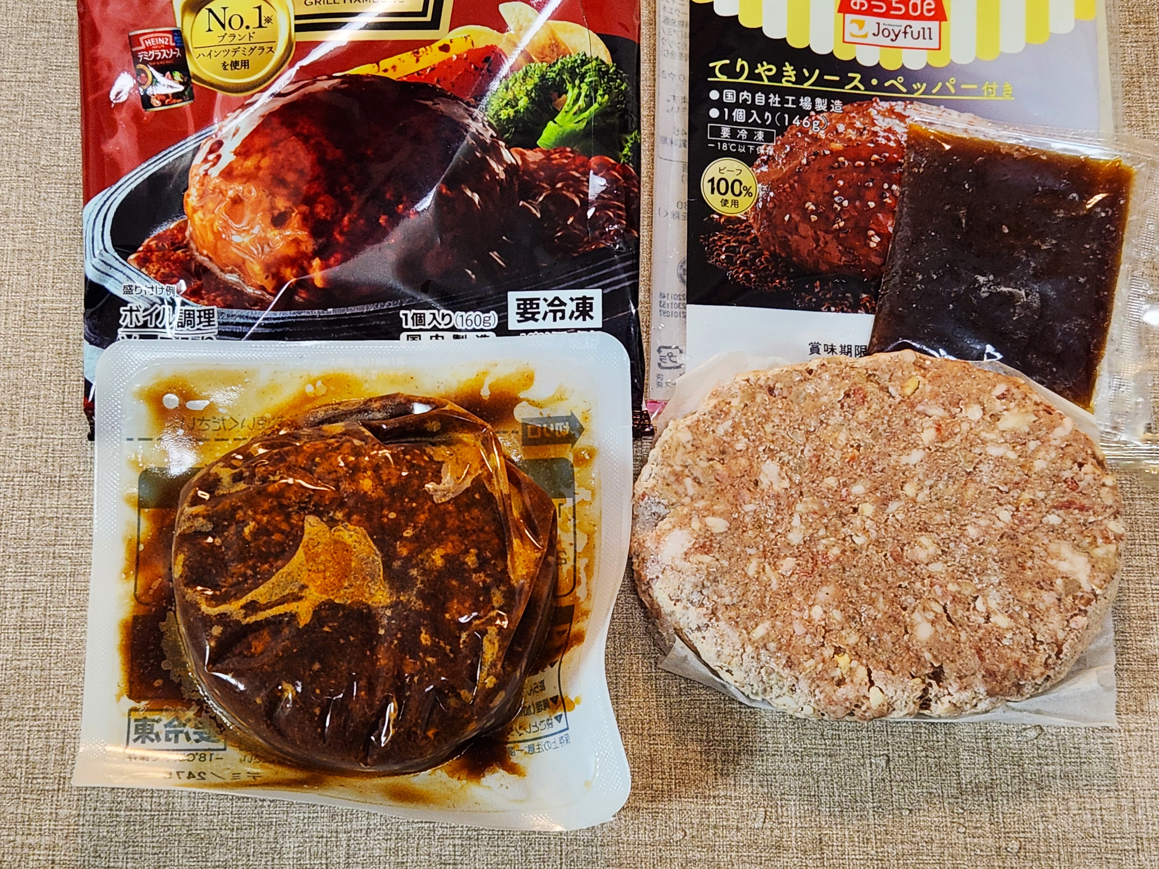 そんな特徴的な二品をカゴにいれて、一つのアイデアを思いつきました。『ハインツ』を温めている間に『ジョイフル』を焼いて、今夜はダブル・ハンバーグを楽しもう!