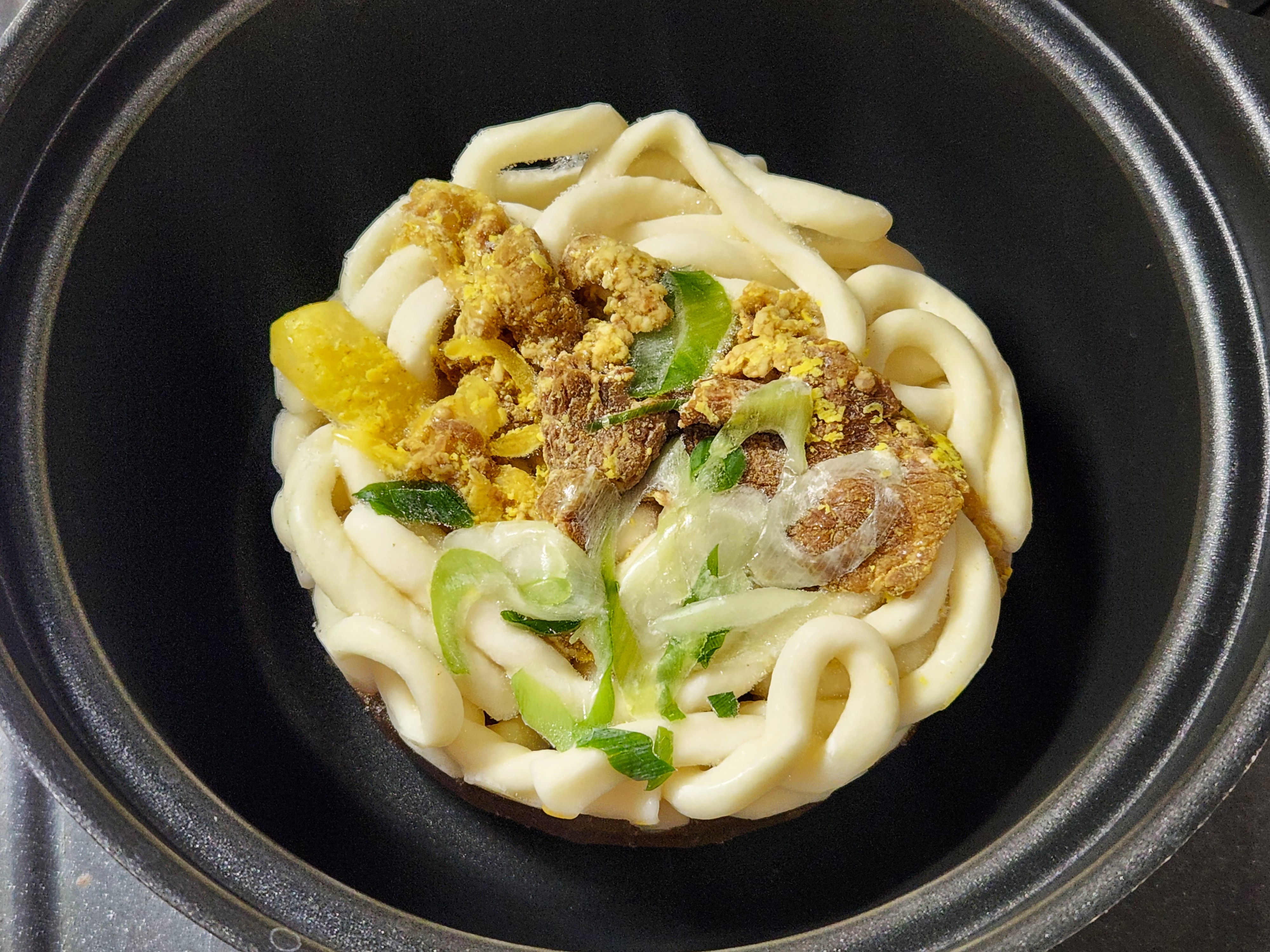 指定通りの8分加熱でフィニッシュ。鍋のまま頂いても、この麵の食感は素敵でした。