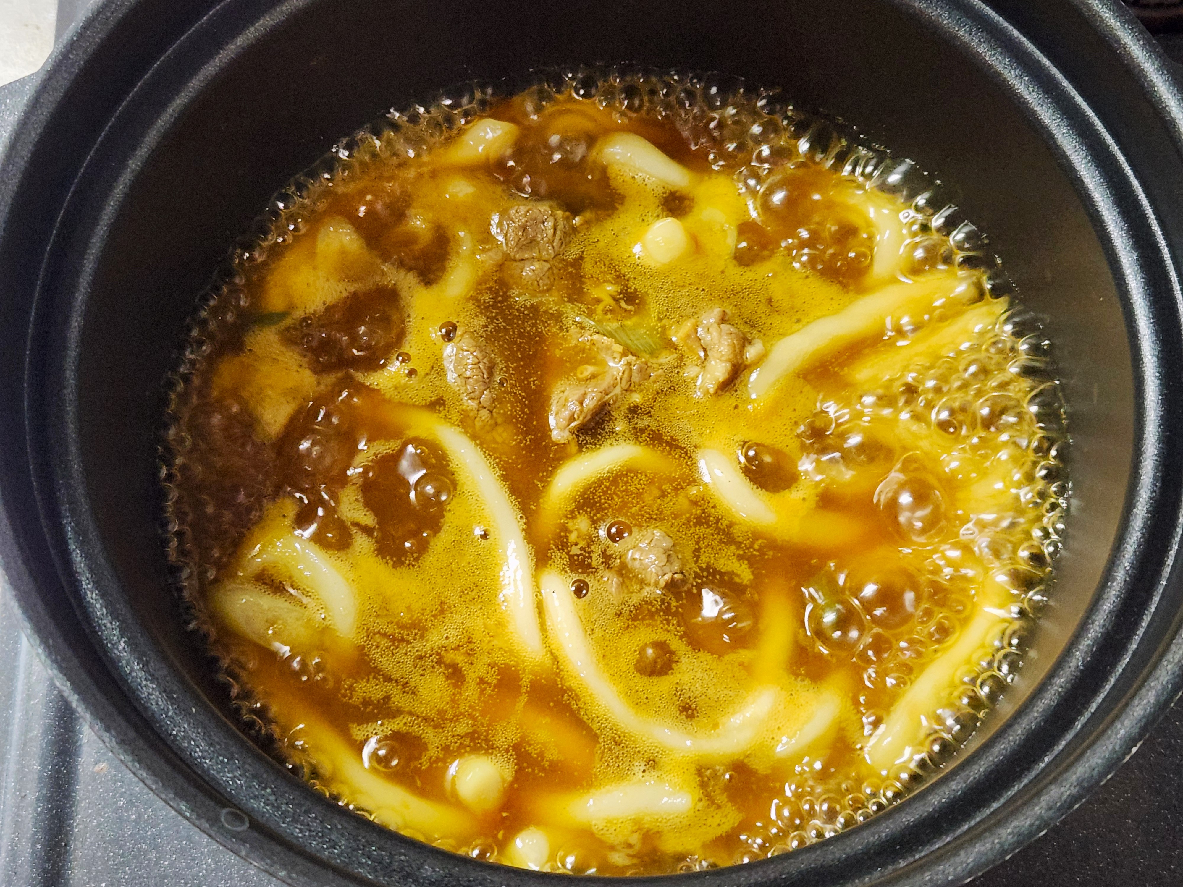 「麺が鍋にくっつかないよう、箸で麺をほぐしながら」という指示がありましたが、箸先で麺がほどけたのは加熱から5分過ぎ。それが和風だし香るカレーの湖に泳ぎ出していく。その全貌を眺めていた僕は、たぶんヘラヘラしていたに違いありません。